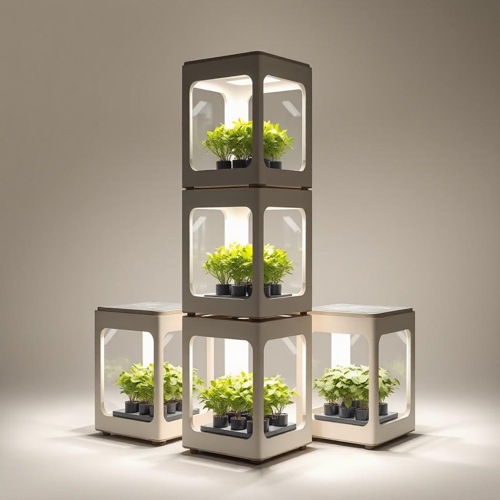 Prototype GrowCubes would feature a full spectrum LED lamp built into each unit. At the base of the unit is a programmable hydroponic cell tasked with watering the plants, and a nutrient reservoir used for periodic feeding. A combined moisture/pH sensor and temperature sensor monitor plant health and feed this back to a mobile app.