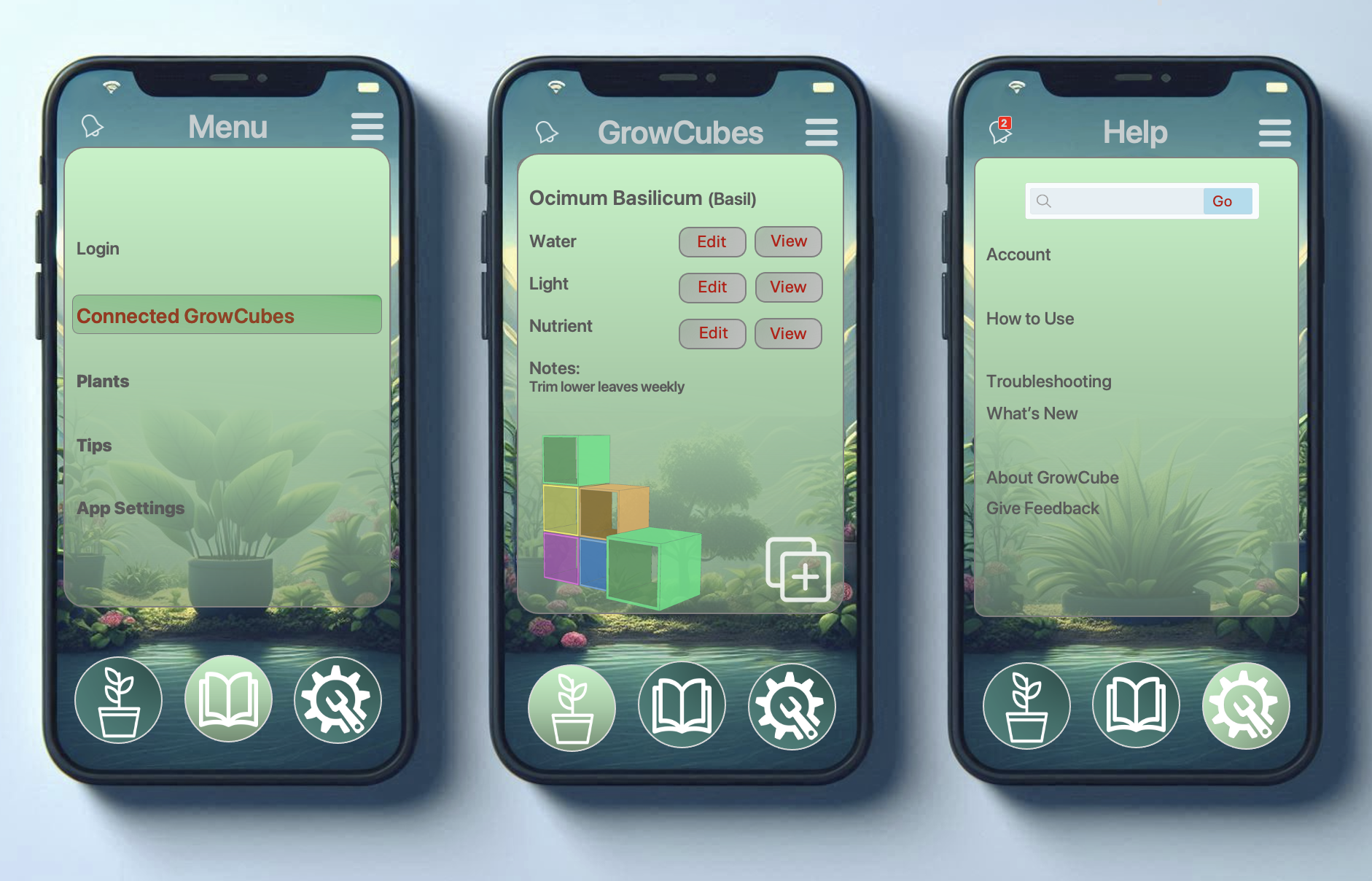 This UX project was an exercise in high-fidelity prototyping a smart-phone application to operate in combination with wireless enabled smart growing cubes.